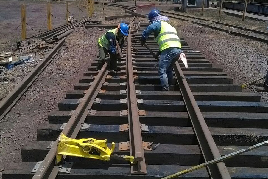 Construcción de herraje de cambio #10 x 115 lbs/yda y rehabilitación de 250 metros lineales de vía clásica con riel nuevo de 115 lb en industria minera.